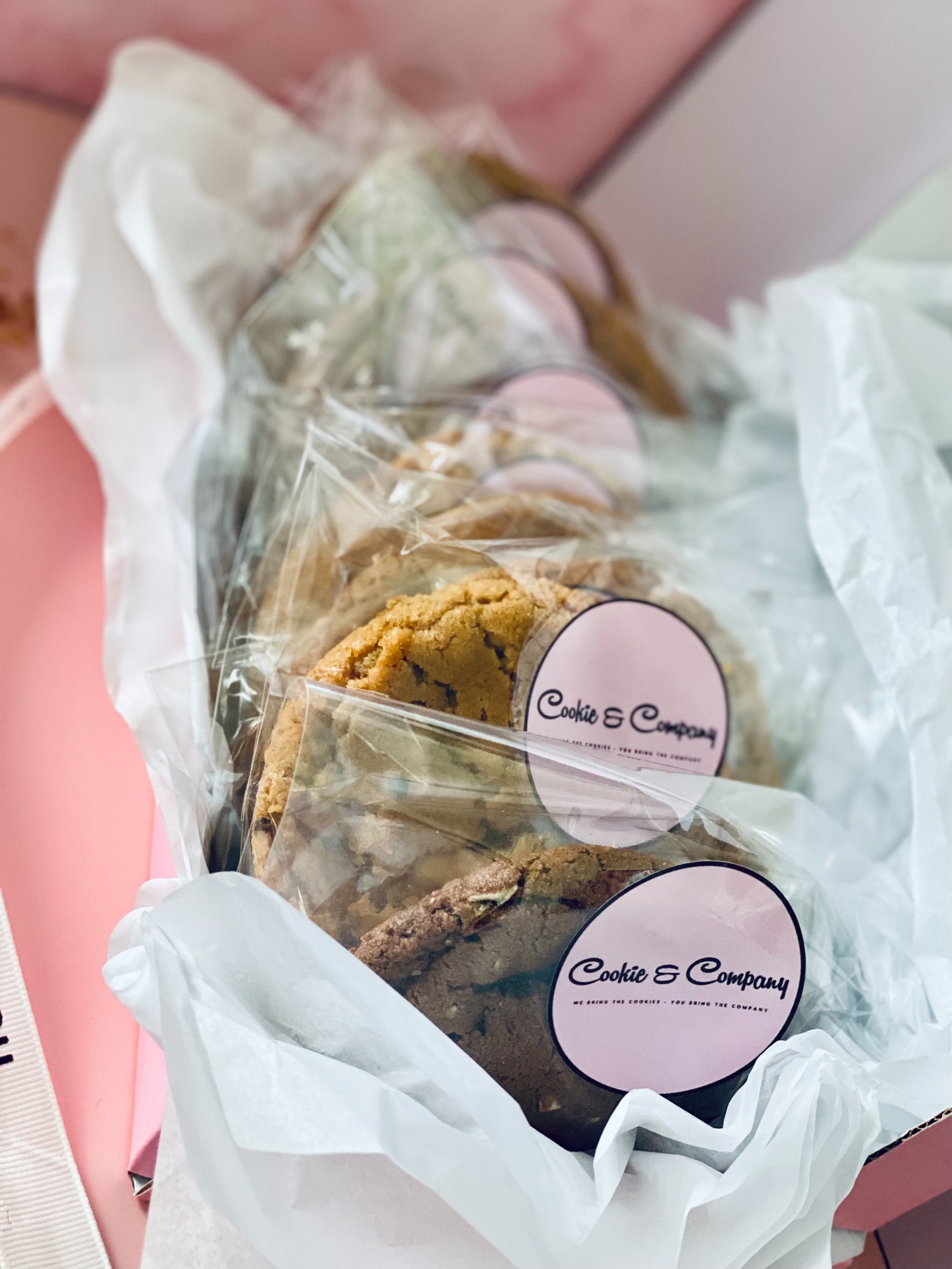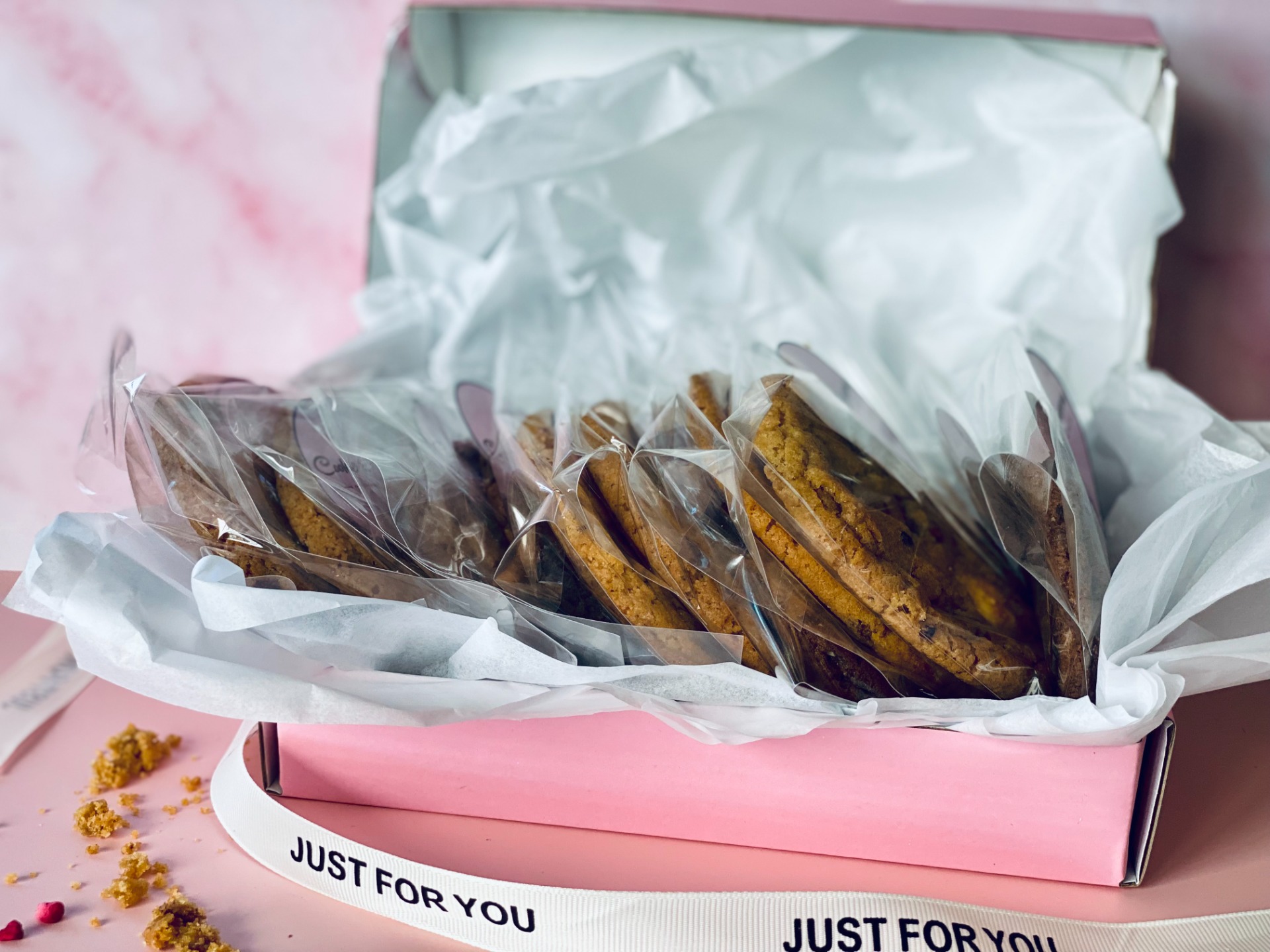 GaveBoxen indeholder 12 cookies (4 stk Raspberry Lemon Dream, 4 stk. Triple Chocolate og 4 stk. Choco Nuts).